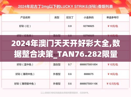 澳门,作为中国的特别行政区,以其独特的文化氛围和繁荣的娱乐产业闻名于世。2024年的澳门,天天开好彩已经成为澳门多彩生活的一个缩影。本文旨在整合澳门2024年天天开好彩的相关信息,以及数据决策的策略,为您提供一部限量版的全面指南。